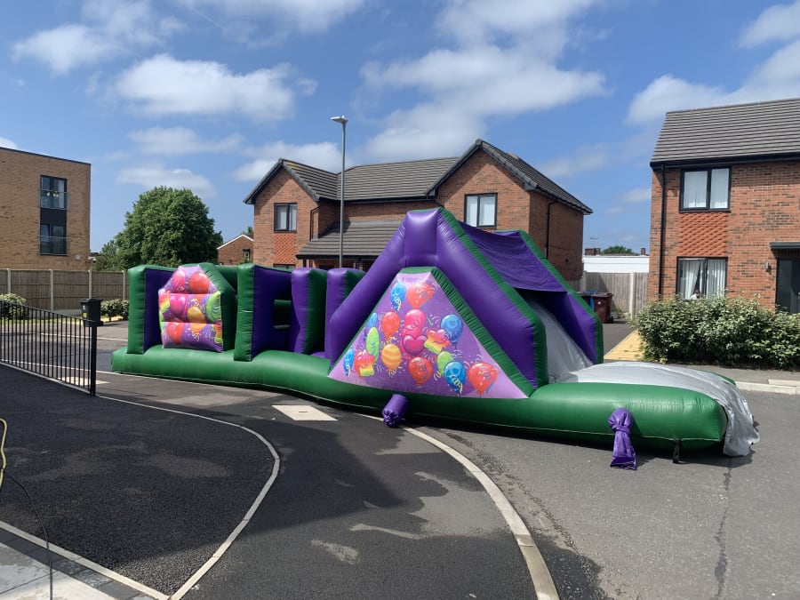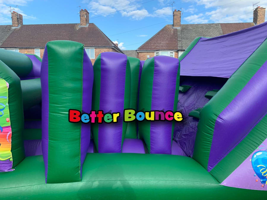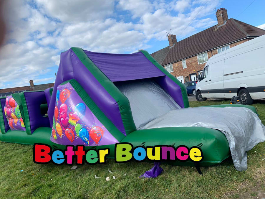 Our 30ft assault course is perfect for those that want all the fun of an obstacle course & are limited on space. This inflatable measures 10ft wide x 30ft length. It features everything you would expect from an obstacle course including pop ups, mangles & a slide.