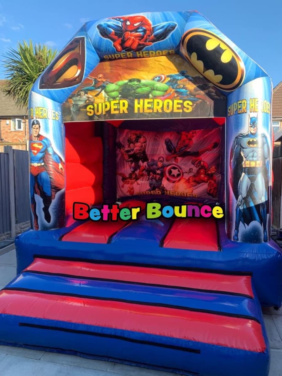 Our best Superhero's themed castle to date which includes all your favourite superhero's including Spiderman, Batman, Superman, Iron man, Wolverine, Hulk, Captain American & many more. This is the perfect idea for your little superhero's day. We also have a Superhero's slide bouncer, 12FT X 17FT Superhero's Slide Bouncer to book in with us now use the book now button below were you can even check the availability for your date of choice