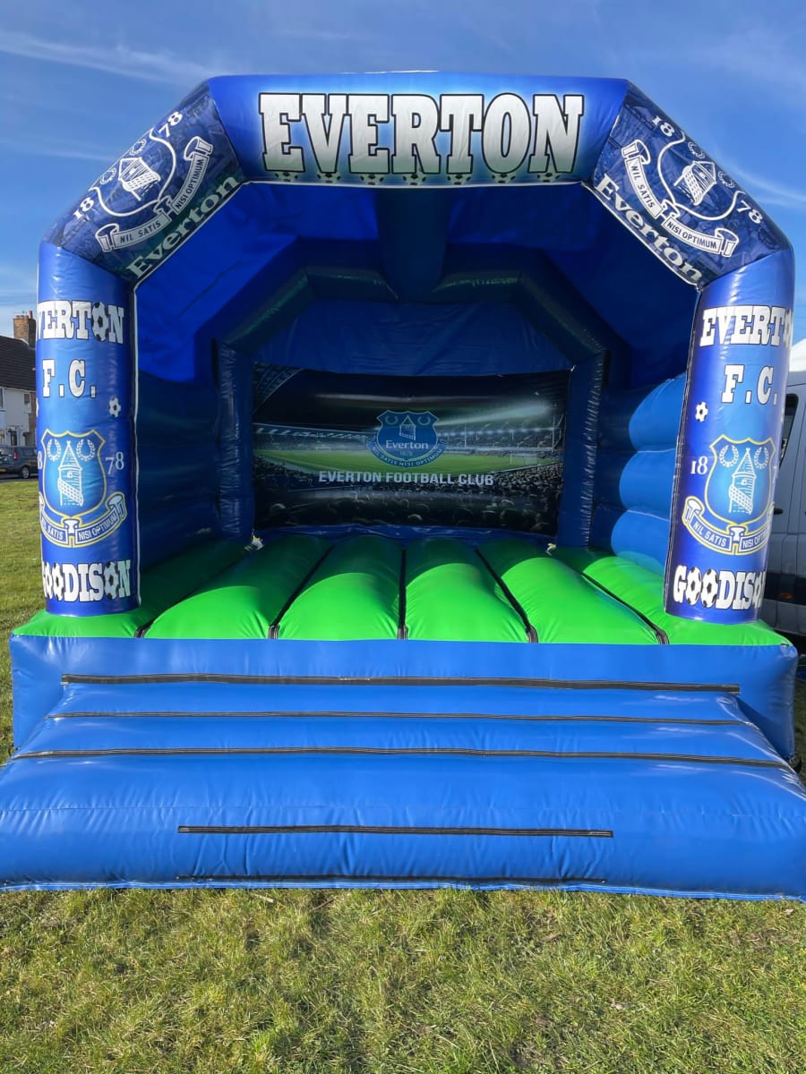 Here we have our 12ft x 15ft Everton Bouncy Castle. This castle will sure be a hit with any blue fan, with the Everton Badge displayed on all parts of our inflatable and the famous Goodison Park printed on the back wall, this will definitely keep the blue half of the party happy!