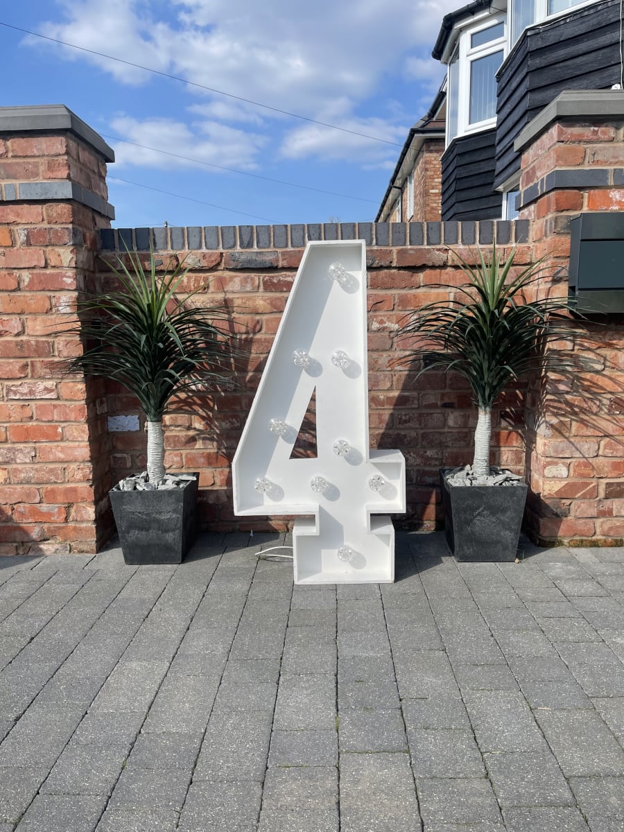 Our illuminated, handcrafted, wooden light up Number 4 is available to BOOK NOW! This is perfect for any occasion/event. Our LED numbers definitely jazz the party up and stand out as a main feature in the room, perfect to get all your gorgeous pictures next to!