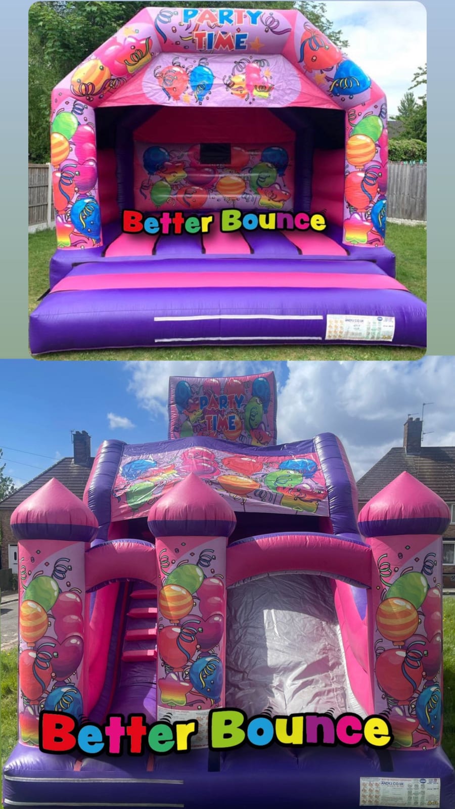 15FT X 17FT Pink Balloon Party Time Castle + 15ft X 20ft Pink Mega Slide