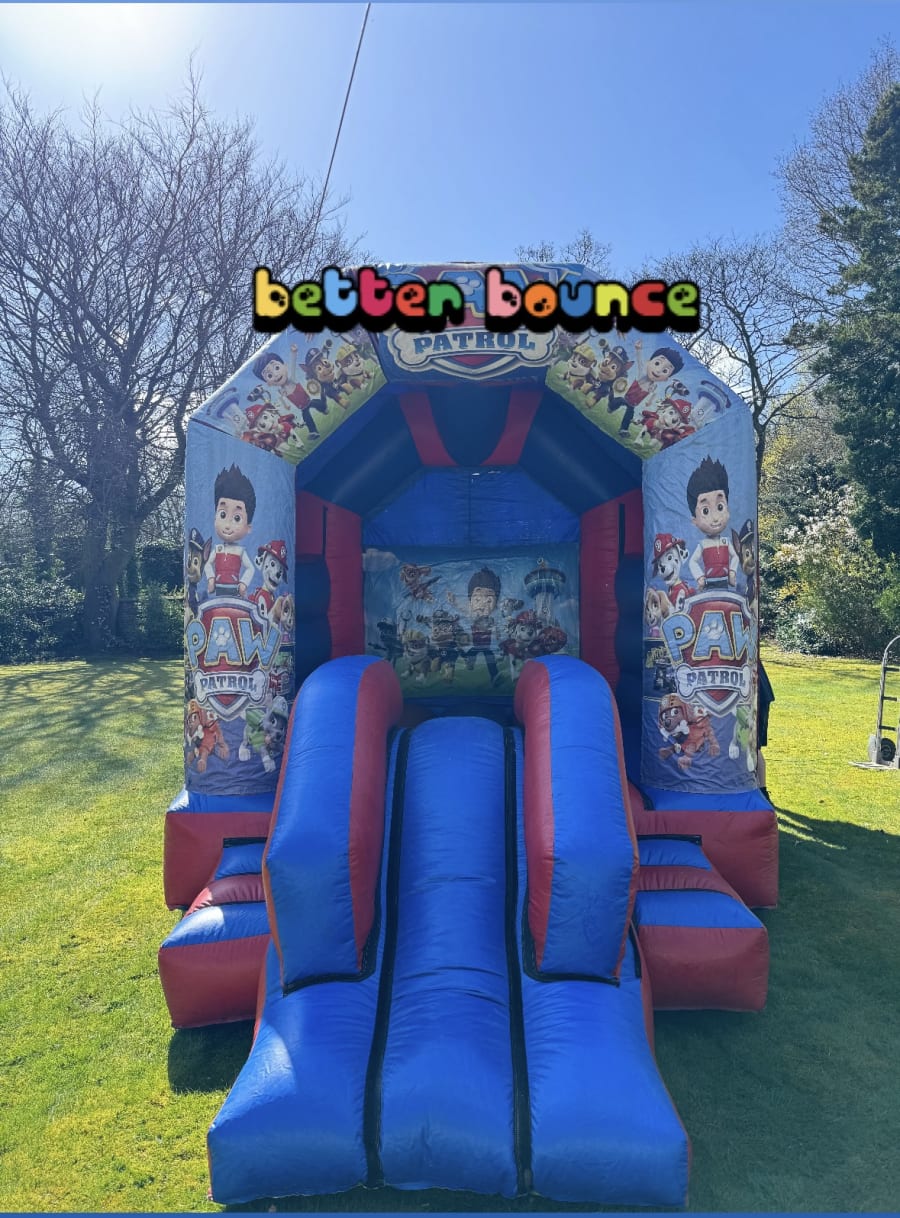 This amazing new 10ft x 17ft Paw Patrol bouncy castle has double the fun with the addition of a slide, your little Paw Patrol fans can slide and bounce at the same time.