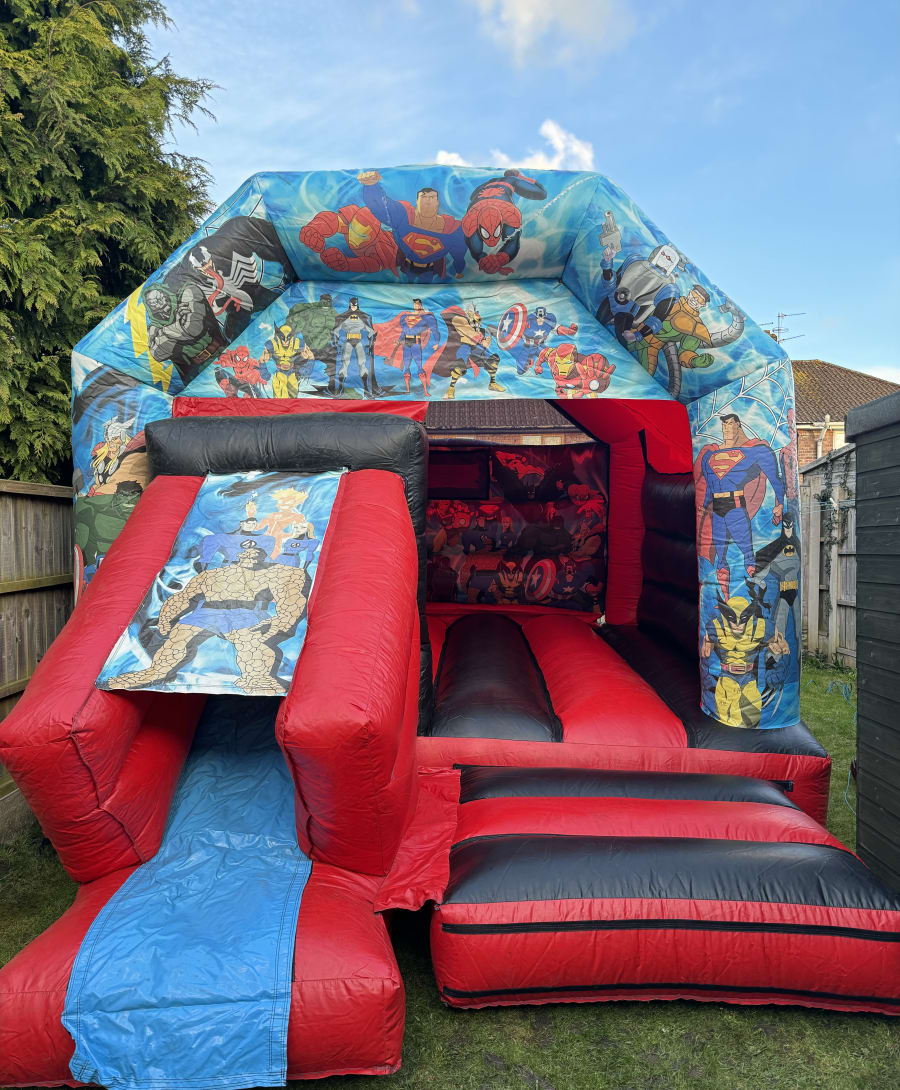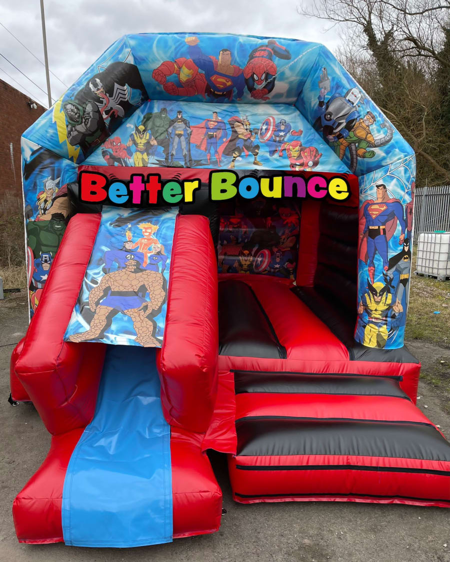 Here we have our brand new 12ft x 17ft Superheroes Slide combo!